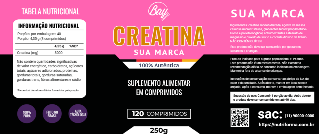 É elaborada em cápsulas sem corantes e com o mínimo possível de aditivos e substâncias artificiais, para você obter todos os benefícios da creatina e cuidar de sua saúde!