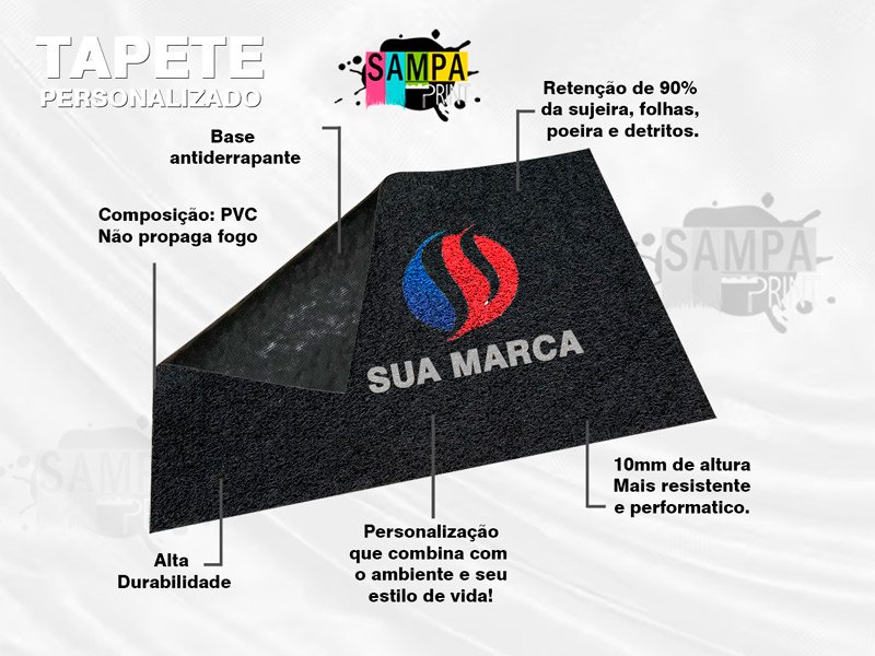 Os tapetes personalizados vinil são feitos por uma máquina computadorizada que utiliza tinta vinílica. O processo automatizado, permite uma aplicação UNIFORME e EXATA da quantidade de tinta. O desgaste da pintura é proporcional à durabilidade do tapete.